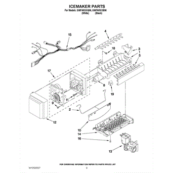 NOTE: 8 cube icemaker Includes two wire harnesses and shut off arm.