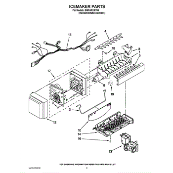 NOTE: 8 cube icemaker Includes two wire harnesses and shut off arm.