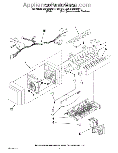 Parts for Whirlpool GI6FDRXXB04: 05 - Icemaker Parts