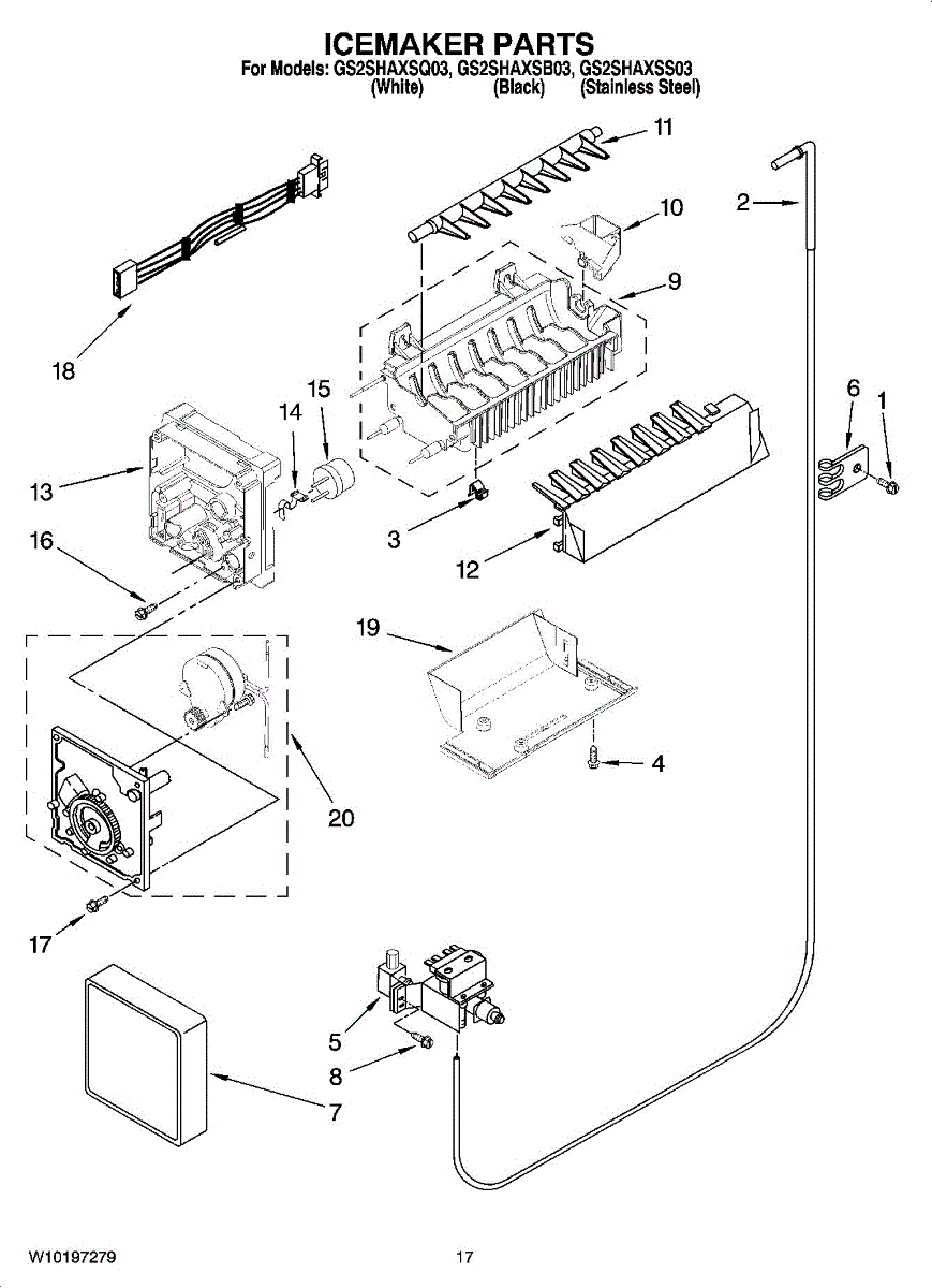 Parts for Whirlpool GS2SHAXSS03: 10 - Icemaker Parts