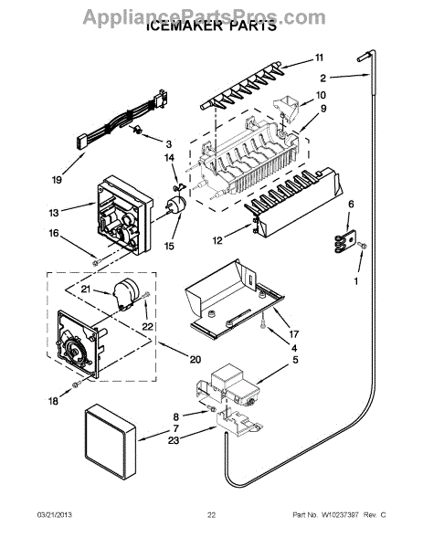 This Icemaker Assembly is an OEM replacement for Whirlpool refrigerators. It is responsible for producing ice cubes, providing you with a convenient and steady supply of ice. Fits models that have the icebucket in the door. The bottom mounting bracket on the old icemaker must be reused.