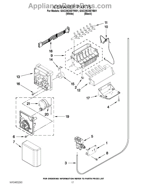 Parts for Whirlpool GSC25C5EYW01: 10 - Icemaker Parts
