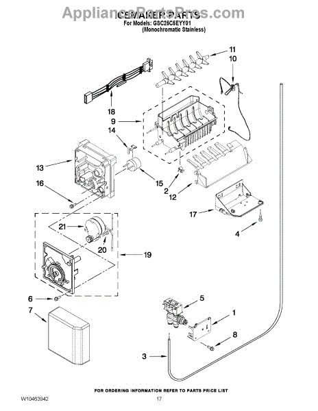 Parts for Whirlpool GSC25C5EYY01: 10 - Icemaker Parts