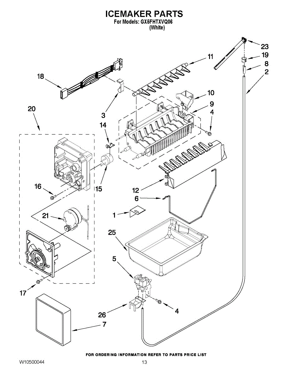 Parts for Whirlpool GX5FHTXVQ06: 08 - Icemaker Parts