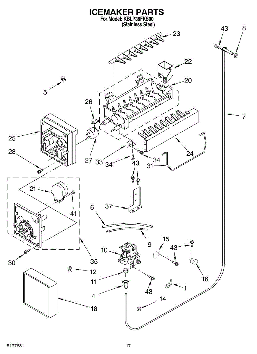 Parts for Kitchenaid KBLP36FKS00: 10 - Icemaker Parts