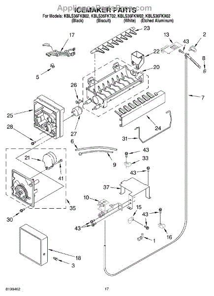 Parts for Kitchenaid KBLS36FKX02: 10 - Icemaker Parts