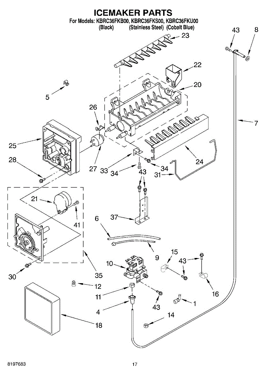 Ice maker leaking or shutoff arm broken? This fill cup and bearing assembly directs water into the mold and supports the arm. 15-minute DIY fix.