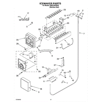 Note: The icemaker does not include the harness or the shut off arm.