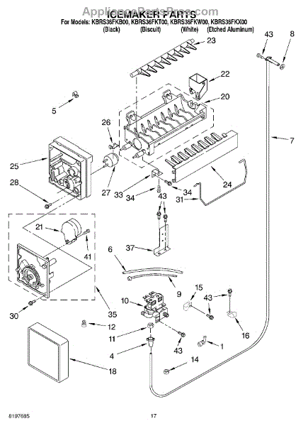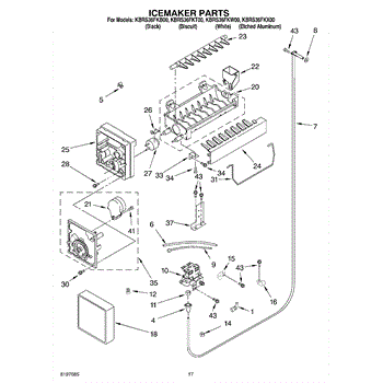 Parts for Kitchenaid KBRS36FKW00: 10 - Icemaker Parts