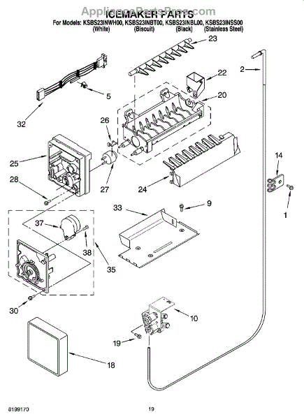 Parts for Kitchenaid KSBS23INWH00: 12 - Icemaker Parts, Optional Parts