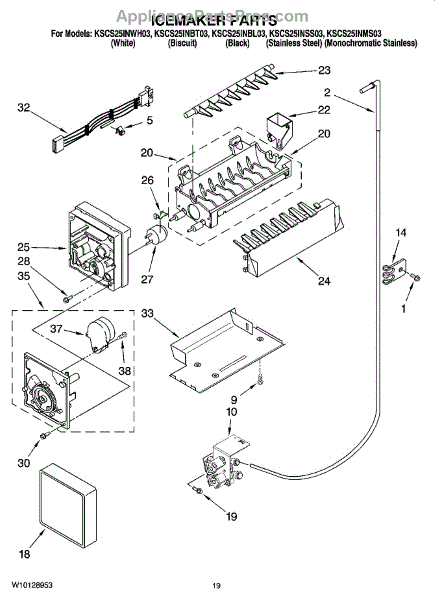 Ice maker leaking or shutoff arm broken? This fill cup and bearing assembly directs water into the mold and supports the arm. 15-minute DIY fix.