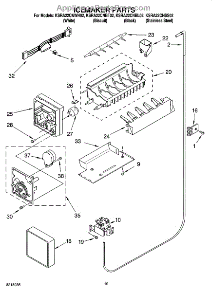 The Icemaker is an OEM part for Whirlpool refrigerators. This component is responsible for producing ice by automatically filling with water, freezing it, and then ejecting the ice cubes into the storage bin. Please note that for installation, you will need to reuse the original cover and bracket from your existing icemaker. Makes 5 cubes at a time.