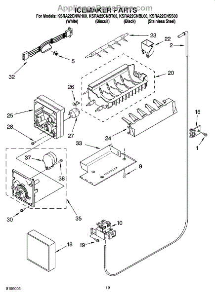 The Icemaker is an OEM part for Whirlpool refrigerators. This component is responsible for producing ice by automatically filling with water, freezing it, and then ejecting the ice cubes into the storage bin. Please note that for installation, you will need to reuse the original cover and bracket from your existing icemaker. Makes 5 cubes at a time.