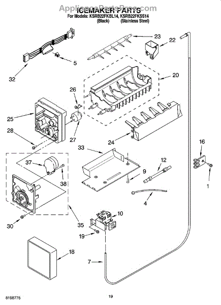 The Icemaker is an OEM part for Whirlpool refrigerators. This component is responsible for producing ice by automatically filling with water, freezing it, and then ejecting the ice cubes into the storage bin. Please note that for installation, you will need to reuse the original cover and bracket from your existing icemaker. Makes 5 cubes at a time.