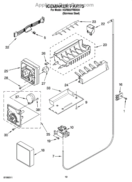The Icemaker is an OEM part for Whirlpool refrigerators. This component is responsible for producing ice by automatically filling with water, freezing it, and then ejecting the ice cubes into the storage bin. Please note that for installation, you will need to reuse the original cover and bracket from your existing icemaker. Makes 5 cubes at a time.