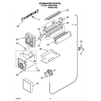 This Icemaker Assembly is an OEM replacement for Whirlpool refrigerators. It is responsible for producing ice cubes, providing you with a convenient and steady supply of ice. Fits models that have the icebucket in the door. The bottom mounting bracket on the old icemaker must be reused.