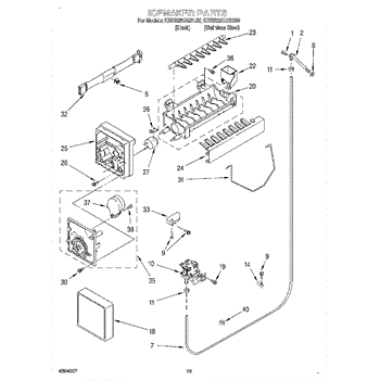 The Ice Container Assembly is an OEM part for Whirlpool refrigerators. This assembly includes the ice bin, where ice is collected, and often features integrated mechanisms or augers for dispensing ice through the refrigerator's door.