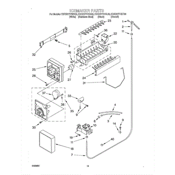 The Ice Container Assembly is an OEM part for Whirlpool refrigerators. This assembly includes the ice bin, where ice is collected, and often features integrated mechanisms or augers for dispensing ice through the refrigerator's door.