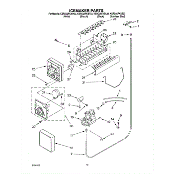 Causes of a bad Ice Container Assembly can include cracks or damage to the bin, which can lead to ice leaks or accumulation in the freezer; wear or malfunction of the dispensing mechanism, affecting its ability to deliver ice.
