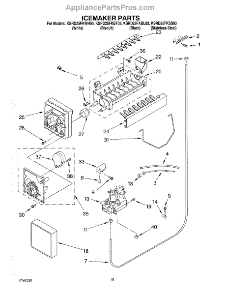 Note: This is the complete horizontal ice dispenser bucket assembly with a crusher. It fits 25 and 27-cubic-foot refrigerator models. For 20 cubic foot models order WP2209778. For 22 cubic foot models order WPW10312301.