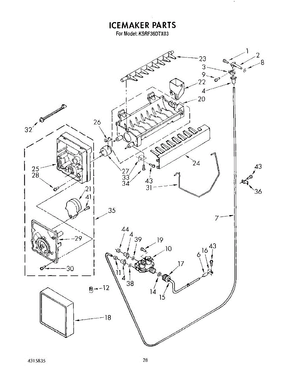 Ice maker leaking or shutoff arm broken? This fill cup and bearing assembly directs water into the mold and supports the arm. 15-minute DIY fix.