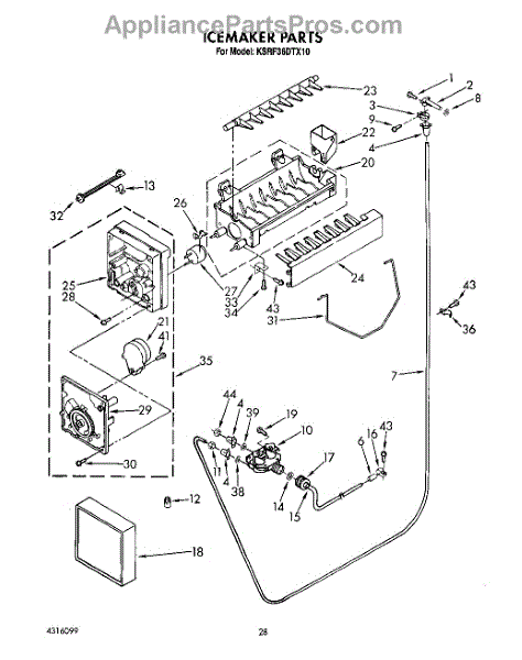 Ice stripper removes ice cubes from the ice maker mold so the dispenser or storage bin fills properly. Replacing a worn or broken stripper helps the ice maker eject cubes cleanly and reduces ice jams or stuck cubes. What it does: