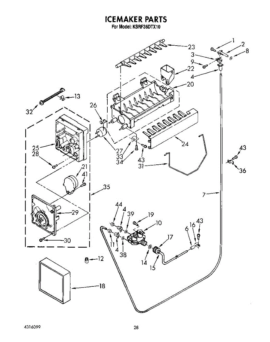 Ice maker leaking or shutoff arm broken? This fill cup and bearing assembly directs water into the mold and supports the arm. 15-minute DIY fix.