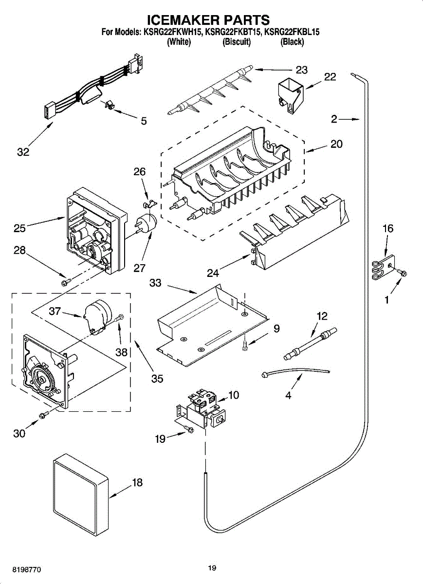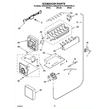 Parts for Kitchenaid KSRG22FKBL15: 11 - Icemaker Parts