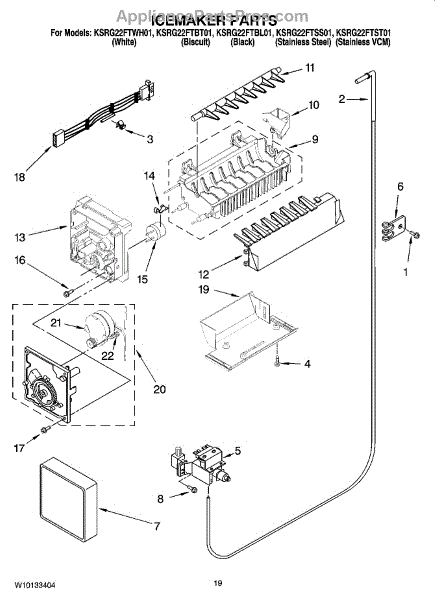 Parts for Kitchenaid KSRG22FTWH01: 11 - Icemaker Parts