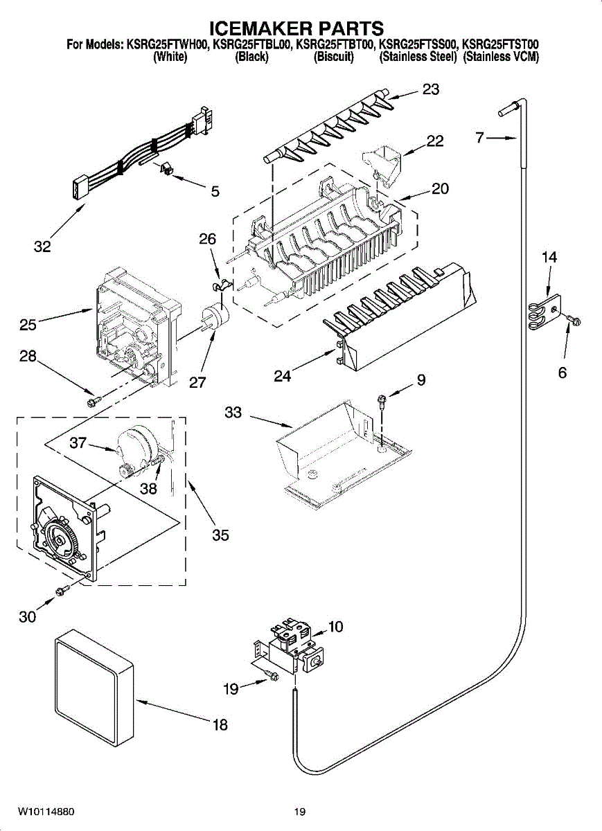 Ice maker leaking or shutoff arm broken? This fill cup and bearing assembly directs water into the mold and supports the arm. 15-minute DIY fix.