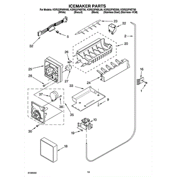 Parts for Kitchenaid KSRI22FNSS00: 11 - Icemaker Parts
