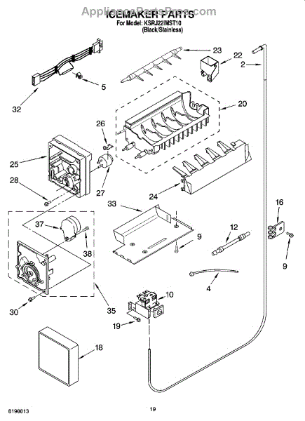 The Icemaker is an OEM part for Whirlpool refrigerators. This component is responsible for producing ice by automatically filling with water, freezing it, and then ejecting the ice cubes into the storage bin. Please note that for installation, you will need to reuse the original cover and bracket from your existing icemaker. Makes 5 cubes at a time.
