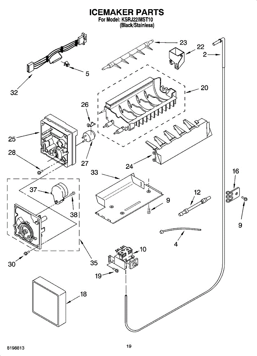 Parts for Kitchenaid KSRJ22IMST10: 11 - Icemaker Parts