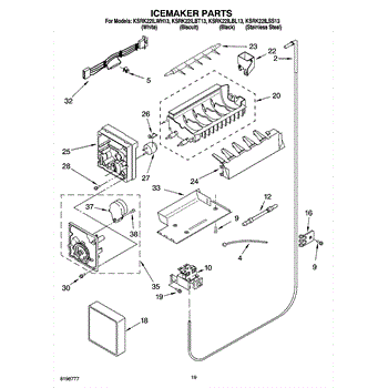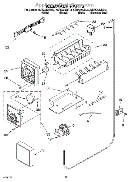 The Icemaker is an OEM part for Whirlpool refrigerators. This component is responsible for producing ice by automatically filling with water, freezing it, and then ejecting the ice cubes into the storage bin. Please note that for installation, you will need to reuse the original cover and bracket from your existing icemaker. Makes 5 cubes at a time.