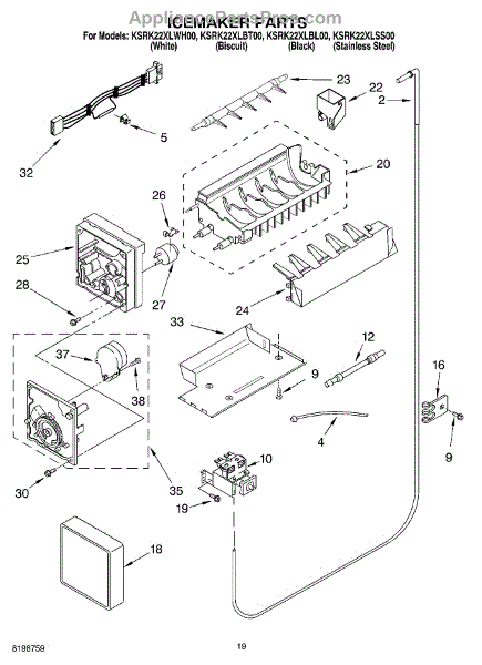 The Icemaker is an OEM part for Whirlpool refrigerators. This component is responsible for producing ice by automatically filling with water, freezing it, and then ejecting the ice cubes into the storage bin. Please note that for installation, you will need to reuse the original cover and bracket from your existing icemaker. Makes 5 cubes at a time.