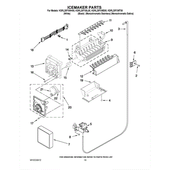 The Ice Maker is an OEM part for Whirlpool refrigerators. It is responsible for automatically producing batches of ice on demand. The ice maker utilizes water that is piped directly into the unit to freeze into cubes and collect in the ice bucket for storage.