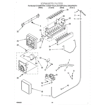 The Ice Container Assembly is an OEM part for Whirlpool refrigerators. This assembly includes the ice bin, where ice is collected, and often features integrated mechanisms or augers for dispensing ice through the refrigerator's door.