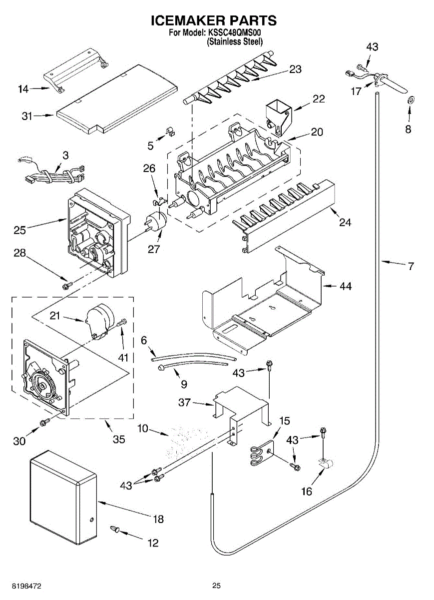 Ice maker leaking or shutoff arm broken? This fill cup and bearing assembly directs water into the mold and supports the arm. 15-minute DIY fix.