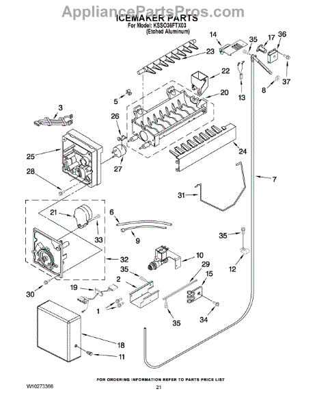 Note: The icemaker does not include the harness or the shut off arm.