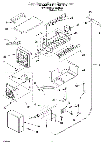 This refrigerator ice maker assembly automatically freezes water and harvests cubes so you have a steady supply of ice in the freezer. Replacing a failed assembly restores consistent, hands-off ice production.