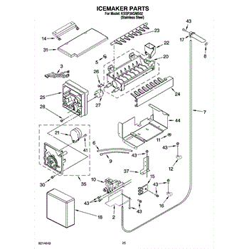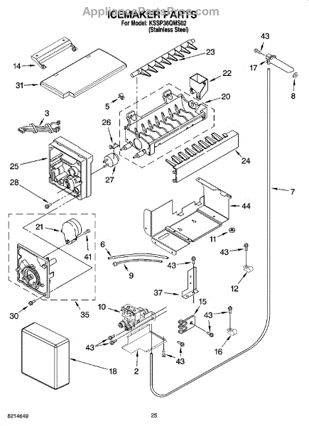 This refrigerator ice maker assembly automatically freezes water and harvests cubes so you have a steady supply of ice in the freezer. Replacing a failed assembly restores consistent, hands-off ice production.