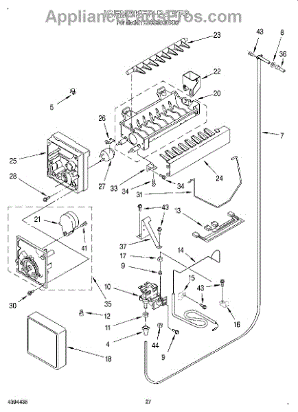Ice maker leaking or shutoff arm broken? This fill cup and bearing assembly directs water into the mold and supports the arm. 15-minute DIY fix.