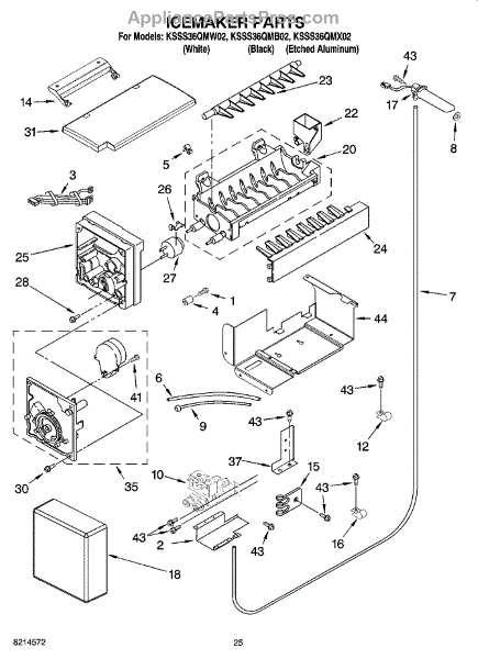 This refrigerator ice maker assembly automatically freezes water and harvests cubes so you have a steady supply of ice in the freezer. Replacing a failed assembly restores consistent, hands-off ice production.