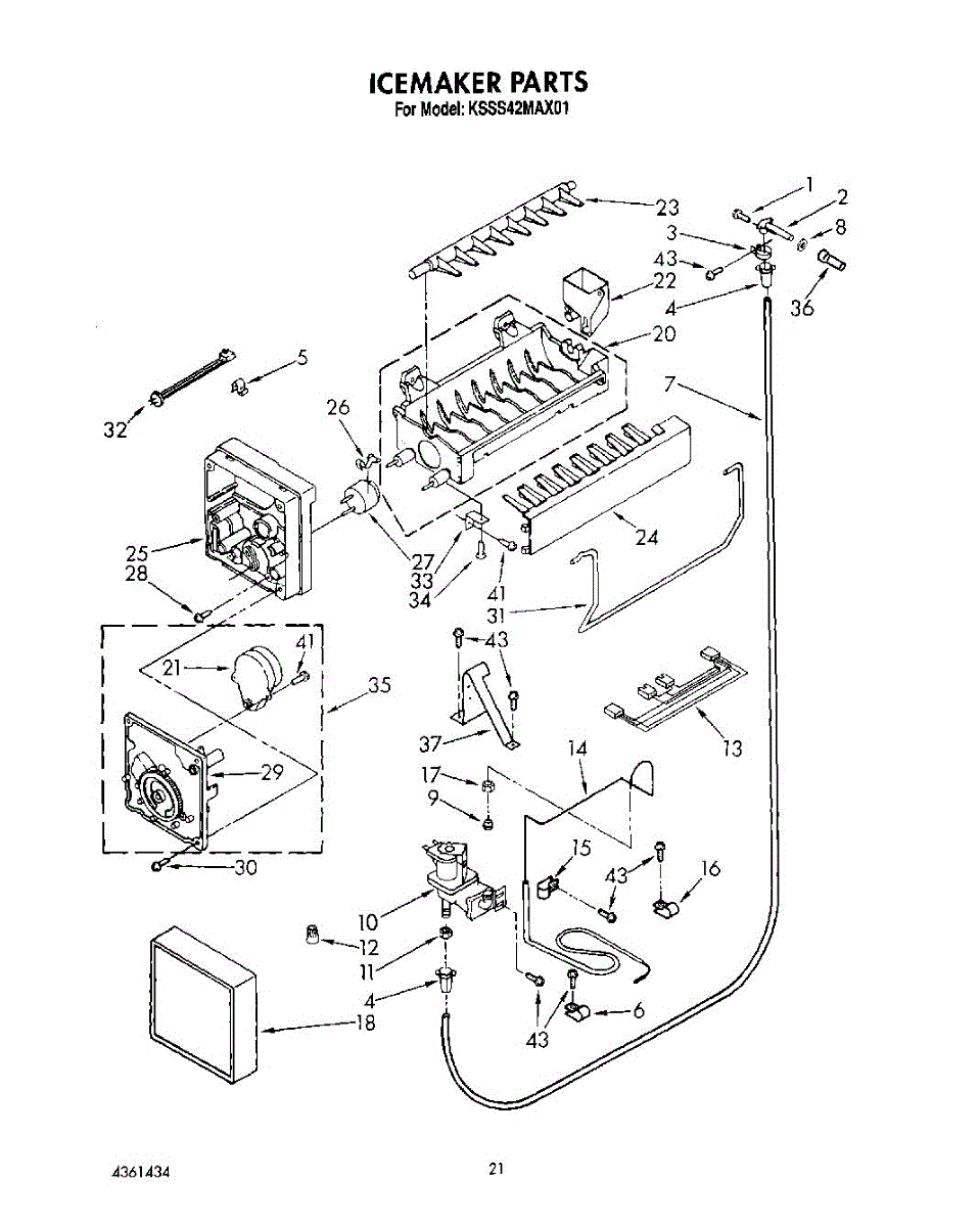 Parts for Kitchenaid KSSS42MAX01: 14 - Icemaker, Lit\Optional Parts