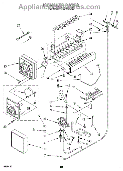 Ice maker leaking or shutoff arm broken? This fill cup and bearing assembly directs water into the mold and supports the arm. 15-minute DIY fix.
