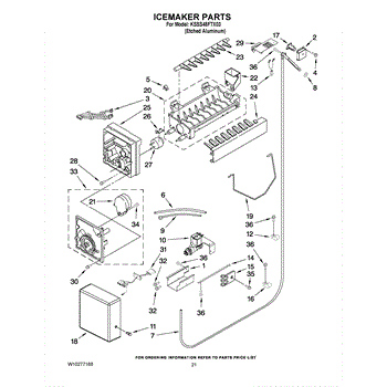Note: The icemaker does not include the harness or the shut off arm.
