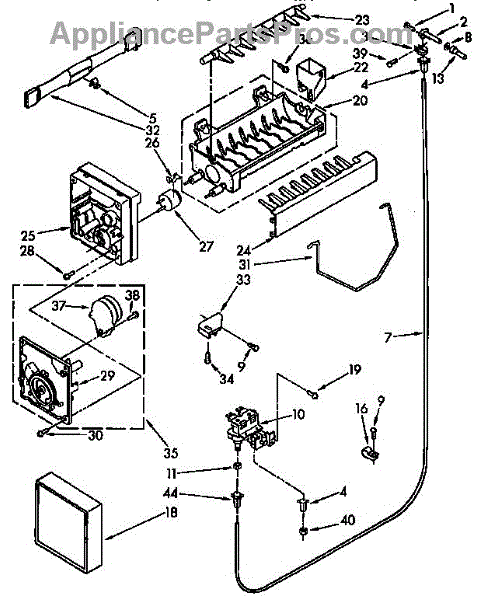 Ice maker leaking or shutoff arm broken? This fill cup and bearing assembly directs water into the mold and supports the arm. 15-minute DIY fix.