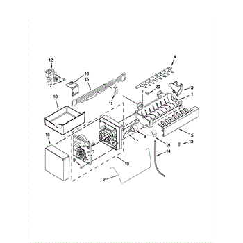 This ice container stores the ice your refrigerator makes and interfaces with the dispenser drive so cubes reach the door. Replacing a cracked or worn bin restores smooth, sanitary ice storage and dependable dispensing.