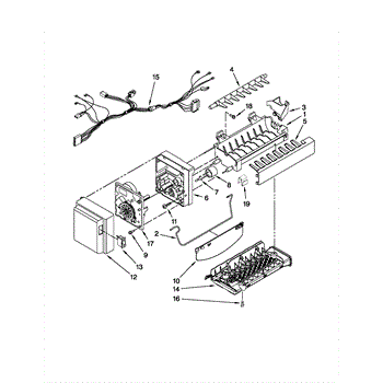 The Ice Maker Assembly is an OEM part for Whirlpool refrigerators, designed to replace your fridge's original ice-making unit. This assembly is responsible for ensuring a consistent and reliable supply of ice, featuring components such as the ice mold, the water inlet valve, and the ice ejector arms.