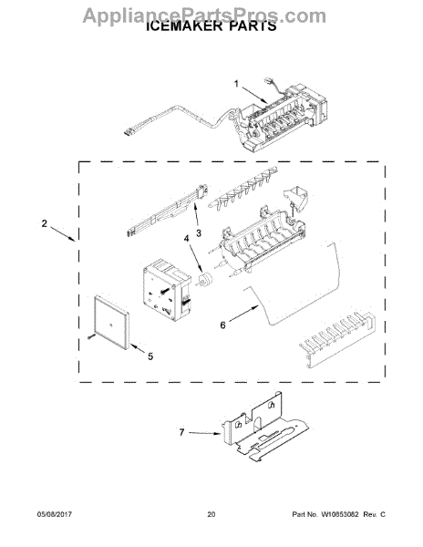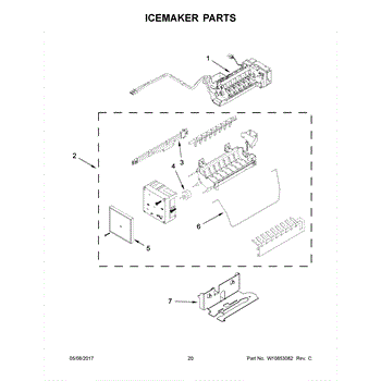 The Icemaker is an OEM part for Whirlpool refrigerators. This part produces ice, automatically filling the ice mold with water and freezing it to create ice cubes, which are then dispensed into the ice storage bin.